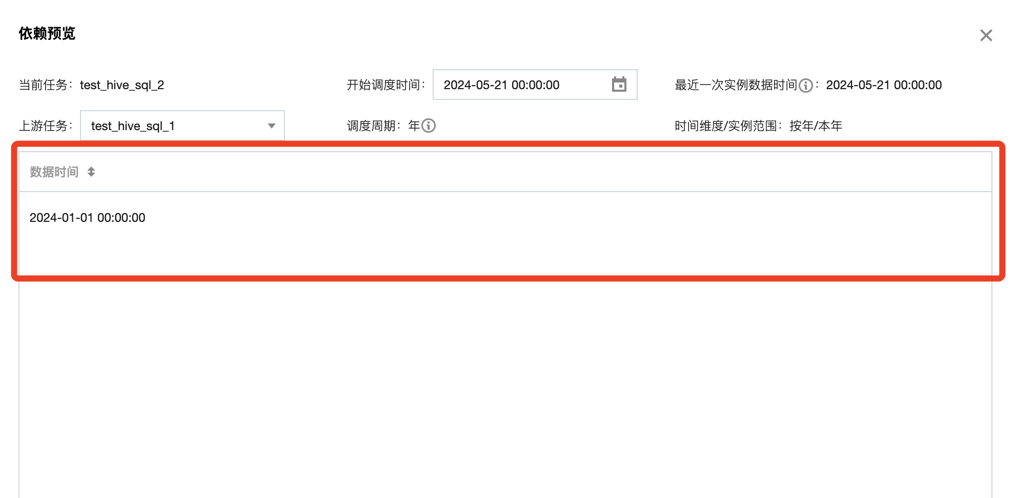 所有年实例依赖一次性任务实例,与数据时间无关。