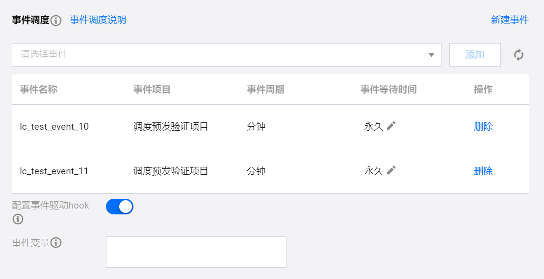 添加事件 | 选择计算任务需要依赖的监听事件,支持单任务添加多个监听事件。 |