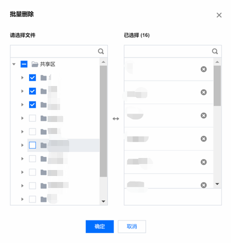 5. 批量删除:单击批量删除后,用户可自行选择需要删除的资源包,单击确定,即可进行资源删除。