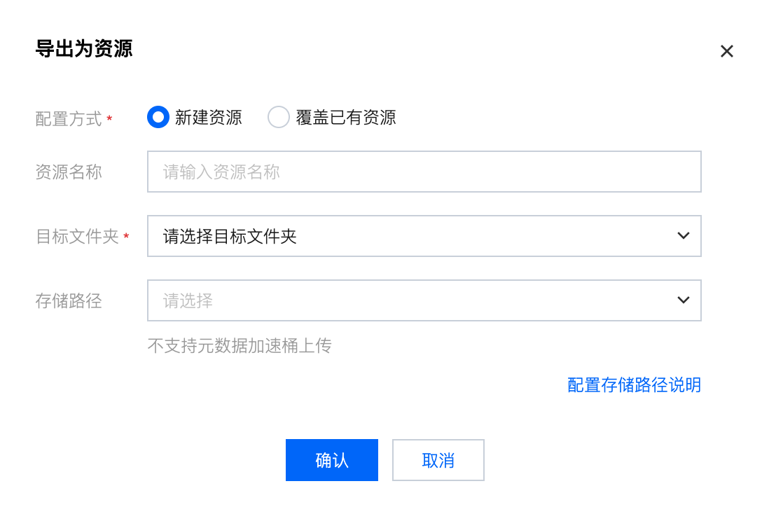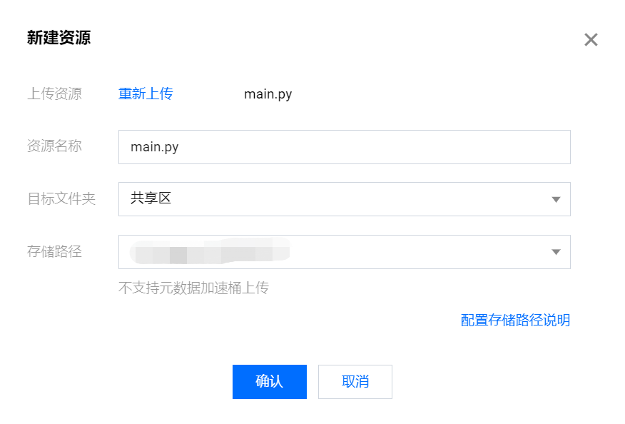 若需将 Python 任务中的代码覆盖已有资源内容,则可选择覆盖已有资源。填写配置信息,单击确认后,即创建资源或替换已有资源的内容。