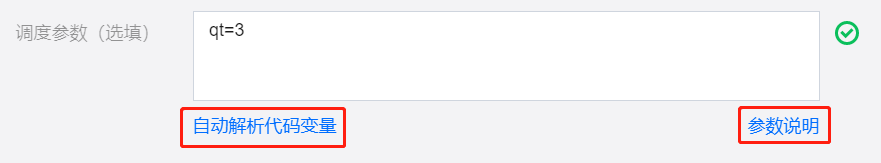 4. 另外,在任务变量配置时提供详细的参数说明,能够帮助用户快速理解并使用功能;在任务变量配置时单击自动解析代码变量功能会弹出变量列表,可以检查变量配置是否符合预期。