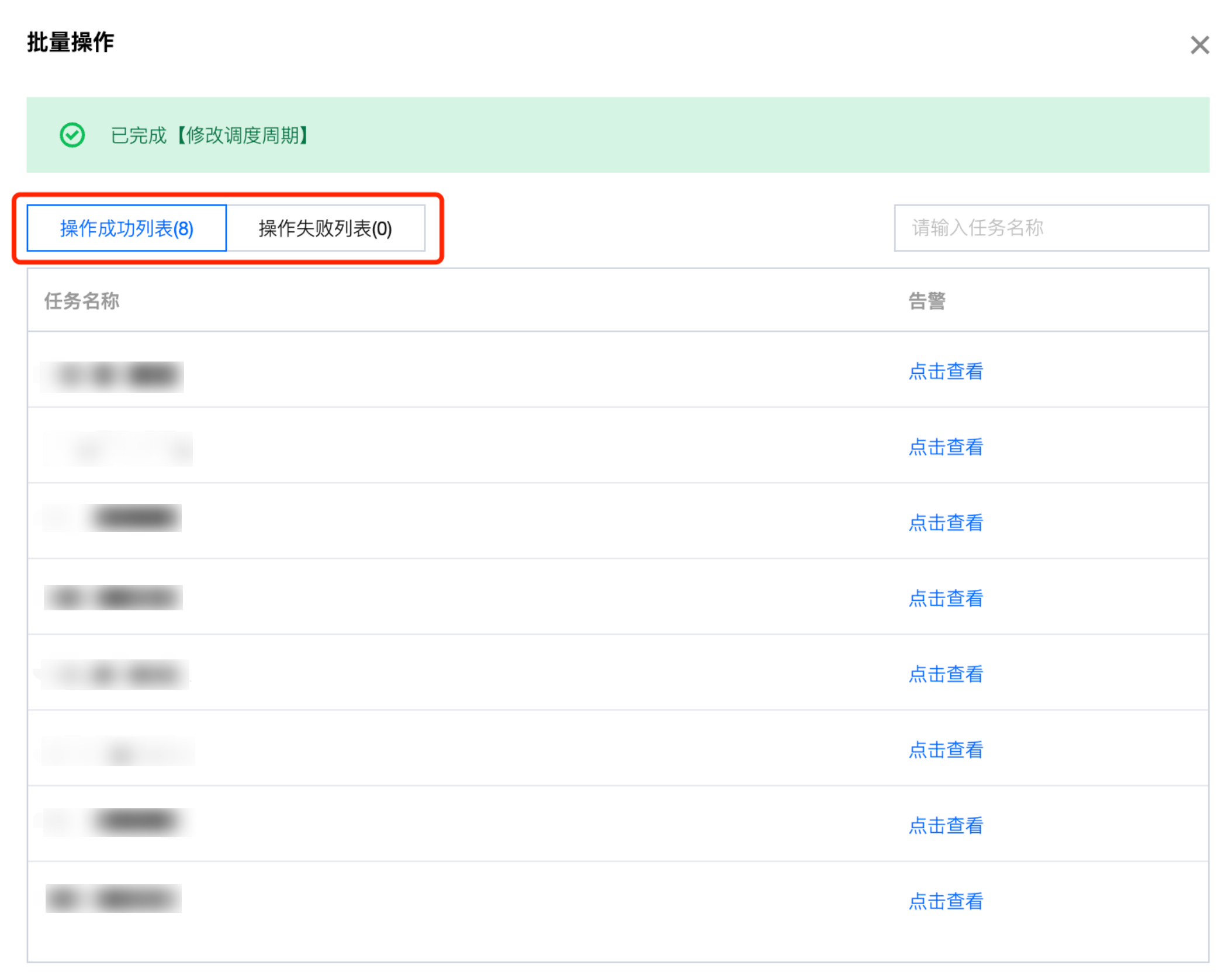 3. 同时,您可以切换操作成功列表和操作失败列表,查看具体哪些类型的批量操作执行失败。
