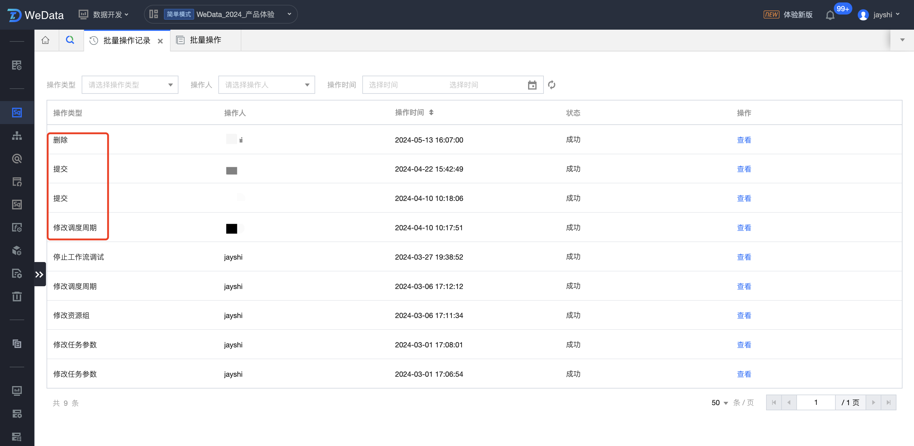 WeData 提供了任务的批量操作,方便用户快速的修改任务的相关属性,提交和删除任务。