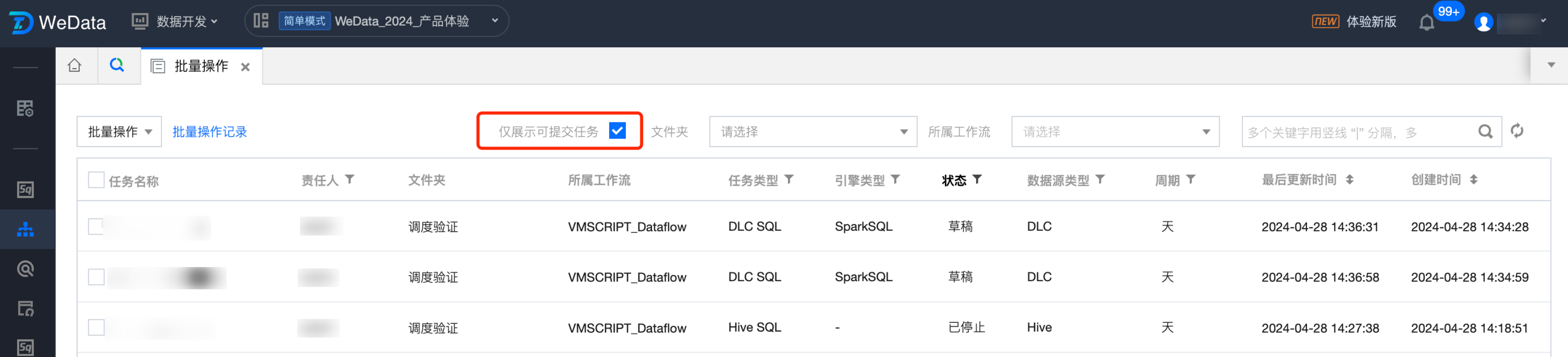 1. 进入批量操作界面,通过勾选列表上方仅展示可提交任务来进行筛选。