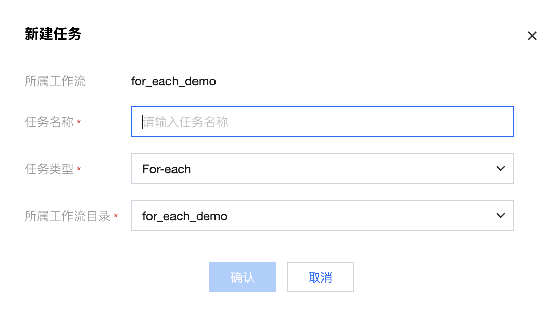2. 进入新建任务弹窗中,填写任务名称、所属工作流等信息,单击确认。