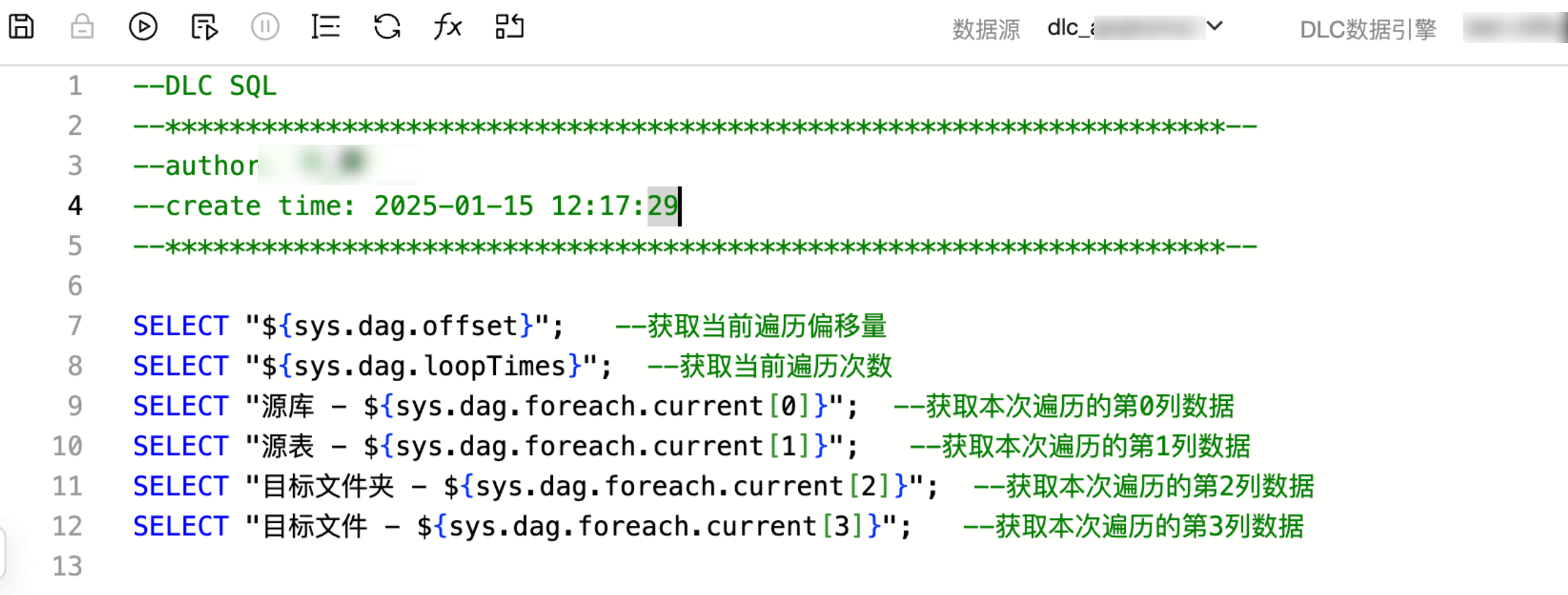 ${sys.dag.offset} | 当前偏移量,即从0开始计算,获取当次循环对应的是第几次循环 | 第一次循环: 0 第二次循环: 1 第三次循环: 2 |