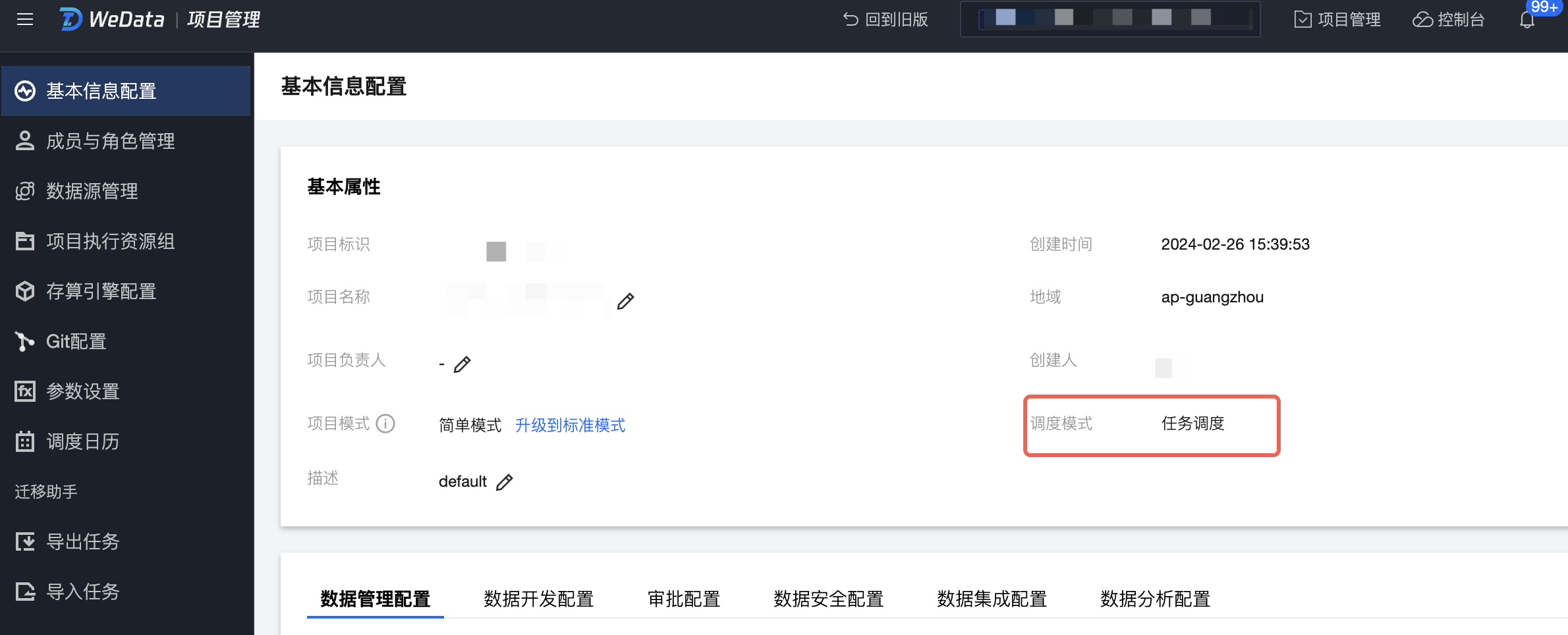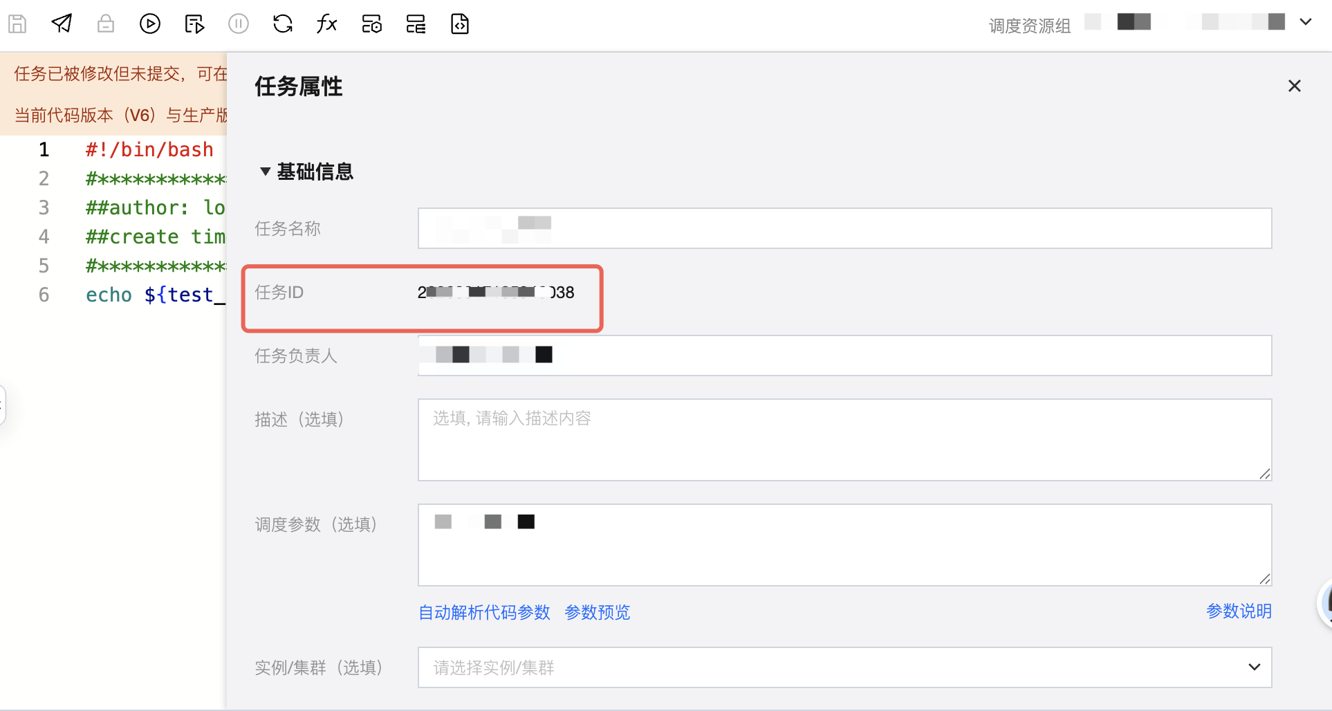 resources:projectParams:paramResourceKey:# Parameter name keyname: paramName# Parameter descriptionparamDescription: paramDescription# Debug run valueparamDefineTest: dryRunVal# Cycle scheduling valueparamDefine: scheduleRunVal