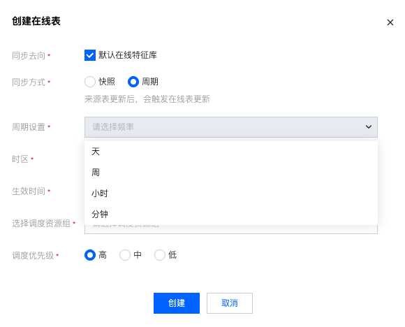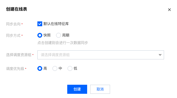 from wedata.feature_store.common.store_config.redis import RedisStoreConfigfrom wedata.feature_store.cloud_sdk_client.models import TaskSchedulerConfigurationonline_config = RedisStoreConfig(host=redis_host, port=redis_password, db=redis_db, password=redis_password)# 将离线特征表发布成为在线特征表--EMR on hive--&--DLC on iceberg(不开启catalog)# publish a offline feature table to online feature table--EMR on hive--&--DLC on iceberg(disable catalog)# Case 1 将离线表table_name通过指定离线数据源传入到默认在线数据源,并采用快照方式# Case 1 Pass the offline table table_name from the specified offline data source to the default online data source in snapshot mode.result = client.publish_table(table_name=table_name, data_source_name=data_source_name, database_name=database_name,is_cycle=False, is_use_default_online=True)# Case 2 将离线表table_name通过指定离线数据源传入到指定数据源(非默认),并采用快照方式, 需注意这里的IP要与录入的数据源中登录的数据源IP信息一致。# Case 2 Sync the offline table table_name from the specified offline data source to the designated non-default data source in snapshot mode. Note that the IP address here must be consistent with the login IP information of the entered data source.result = client.publish_table(name=table_name, data_source_name=data_source_name, database_name=database_name,is_cycle=False, is_use_default_online=False, online_config=online_config)# Case 3 将离线表table_name通过指定离线数据源传入到默认在线数据源,并采用周期的方式,每五分钟运行一次# Sync the offline table table_name from the specified offline data source to the default online data source in cycle mode, with a run interval of every five minutes.cycle_obj = TaskSchedulerConfiguration()cycle_obj.CrontabExpression = "0 0/5 * * * ?"result = client.publish_table(name=table_name, data_source_name=data_source_name, database_name=database_name,is_cycle=True, cycle_obj=cycle_obj, is_use_default_online=True)# 将离线特征表发布成为在线特征表--DLC on iceberg(开启catalog)# publish a offline feature table to online feature table--DLC on iceberg(enable catalog)# Case 1 将离线表table_name通过指定离线数据源传入到默认在线数据源,并采用快照方式# Case 1 Pass the offline table table_name from the specified offline data source to the default online data source in snapshot mode.result = client.publish_table(table_name=table_name, data_source_name=data_source_name, database_name=database_name,is_cycle=False, is_use_default_online=True, catalog_name=catalog_name)# Case 2 将离线表table_name通过指定离线数据源传入到指定数据源(非默认),并采用快照方式, 需注意这里的IP要与录入的数据源中登录的数据源IP信息一致。# Case 2 Sync the offline table table_name from the specified offline data source to the designated non-default data source in snapshot mode. Note that the IP address here must be consistent with the login IP information of the entered data source.result = client.publish_table(table_name=table_name, data_source_name=data_source_name, database_name=database_name,is_cycle=False, is_use_default_online=False, online_config=online_config, catalog_name=catalog_name)# Case 3 将离线表table_name通过指定离线数据源传入到默认在线数据源,并采用周期的方式,每五分钟运行一次# Sync the offline table table_name from the specified offline data source to the default online data source in cycle mode, with a run interval of every five minutes.cycle_obj = TaskSchedulerConfiguration()cycle_obj.CrontabExpression = "0 0/5 * * * ?"result = client.publish_table(table_name=table_name, data_source_name=data_source_name, database_name=database_name,is_cycle=True, cycle_obj=cycle_obj, is_use_default_online=True, catalog_name=catalog_name)