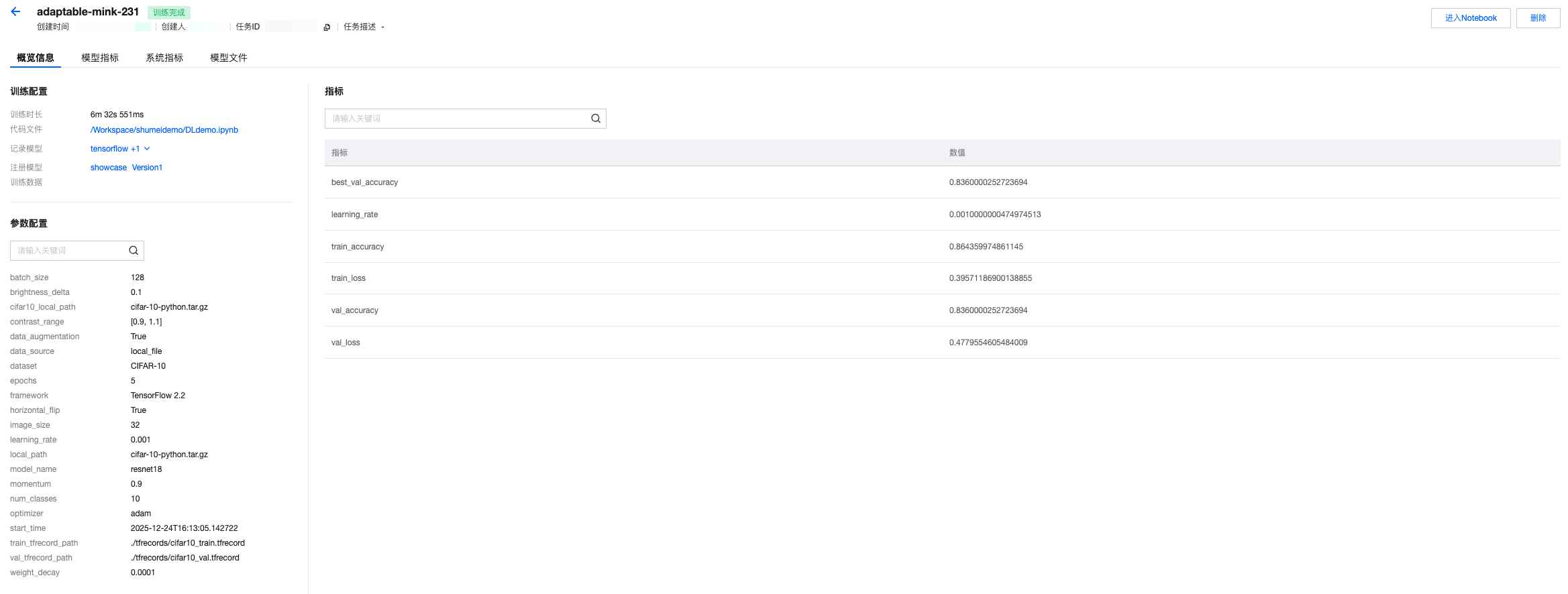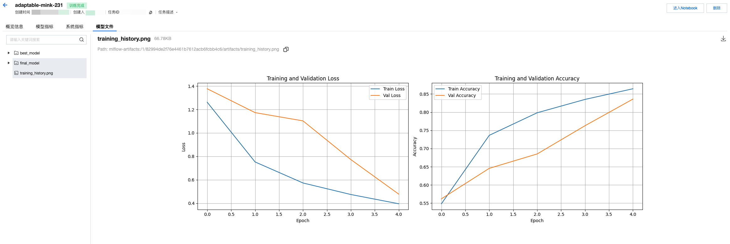 # 初始化训练器,并且从training_config.json中读取训练超参数# Initial trainer, and read training hyperparam from training_config.jsontrainer = CIFAR10Trainer('training_config.json')# 开始训练trainer.train()# 启动MLflow UI(在终端中运行)print("训练完成!请在实验管理中查看运行结果。Training complete!Please check task result")