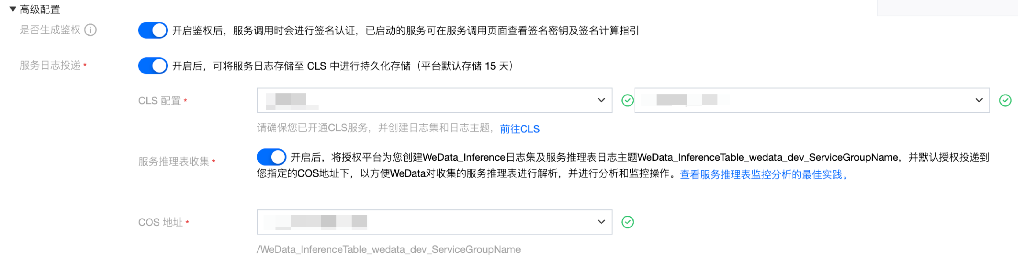 生成鉴权 | 服务安全控制开关。 | 显示是否开启了签名认证(API Key)。未开启则地址可直接访问。 |