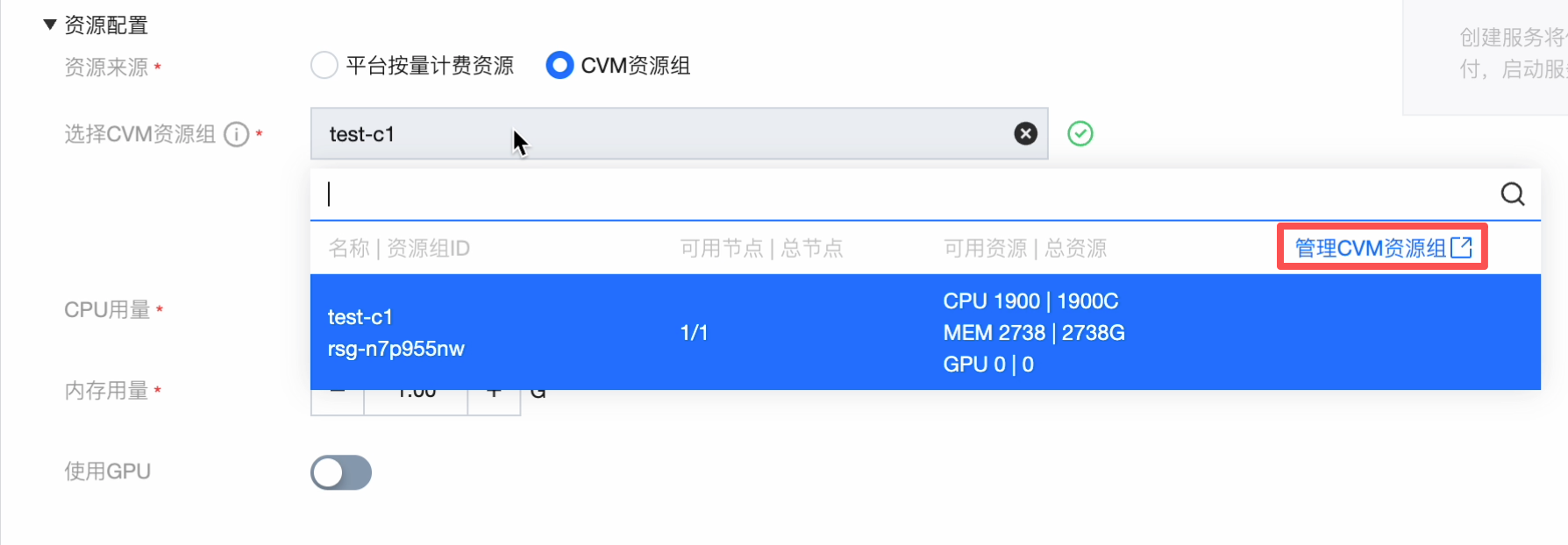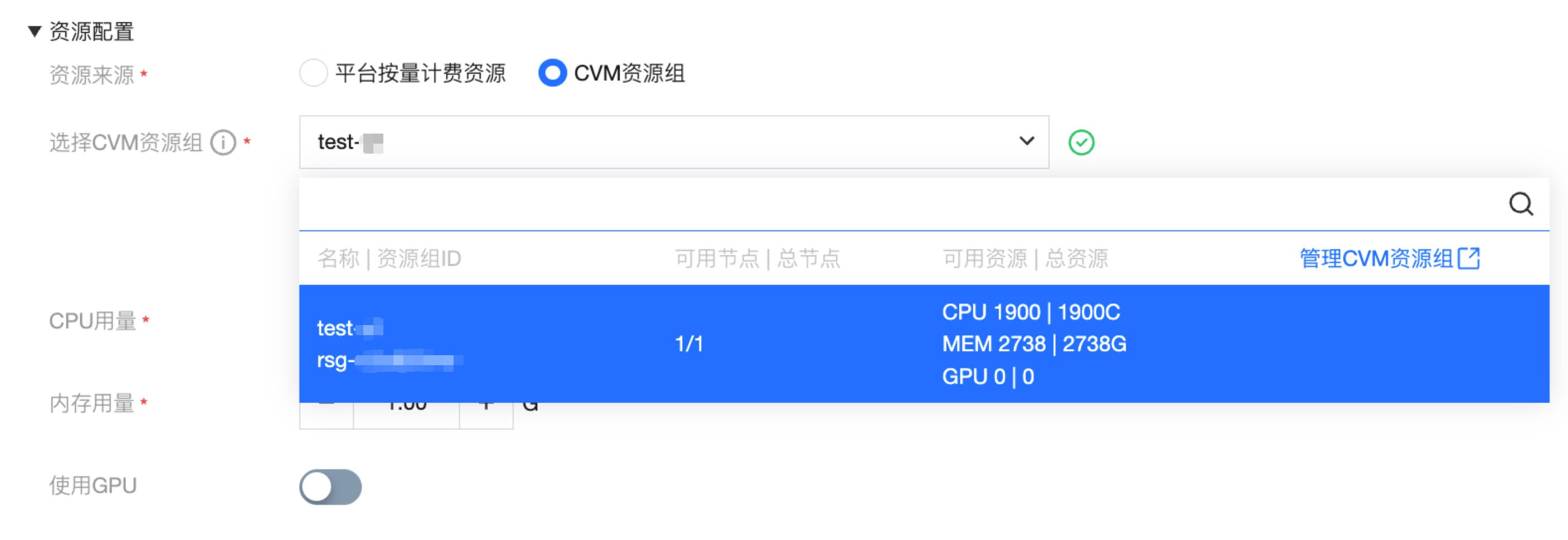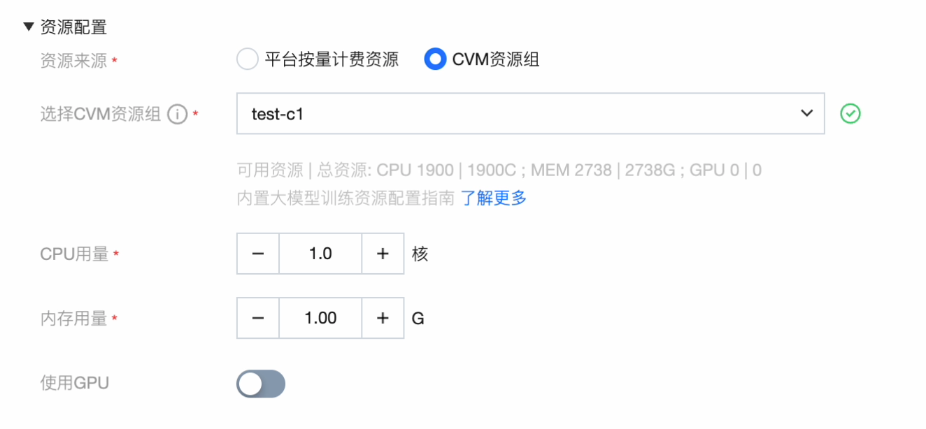 资源来源 | | 该版本运行所消耗的计算资源类型。 | 标识资源来自“平台按量计费资源”或“CVM 资源组”。 |