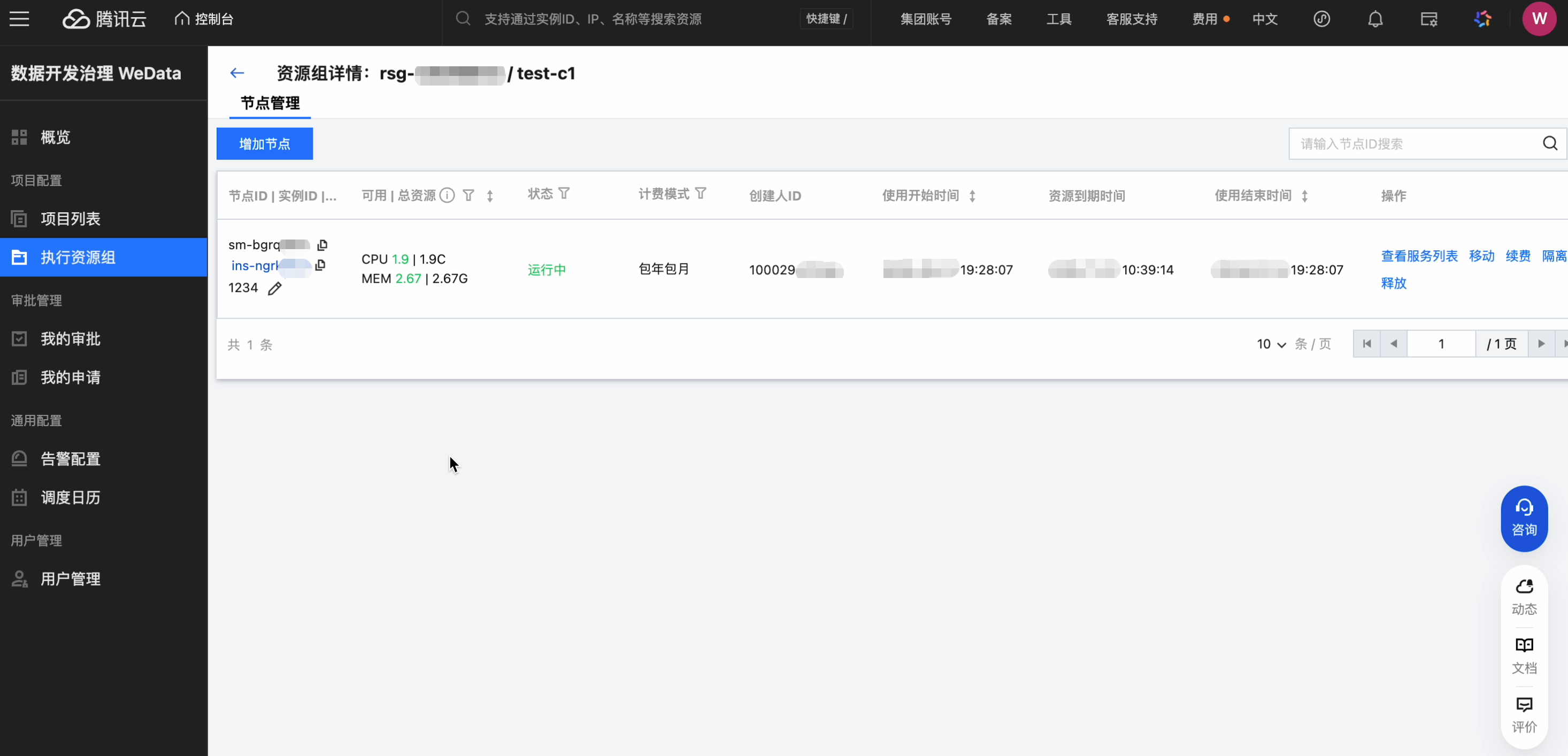 监控 | 实例级监控入口。 | 查看单个实例的 $CPU/MEM$ 消耗,判断是否存在资源倾斜。 |