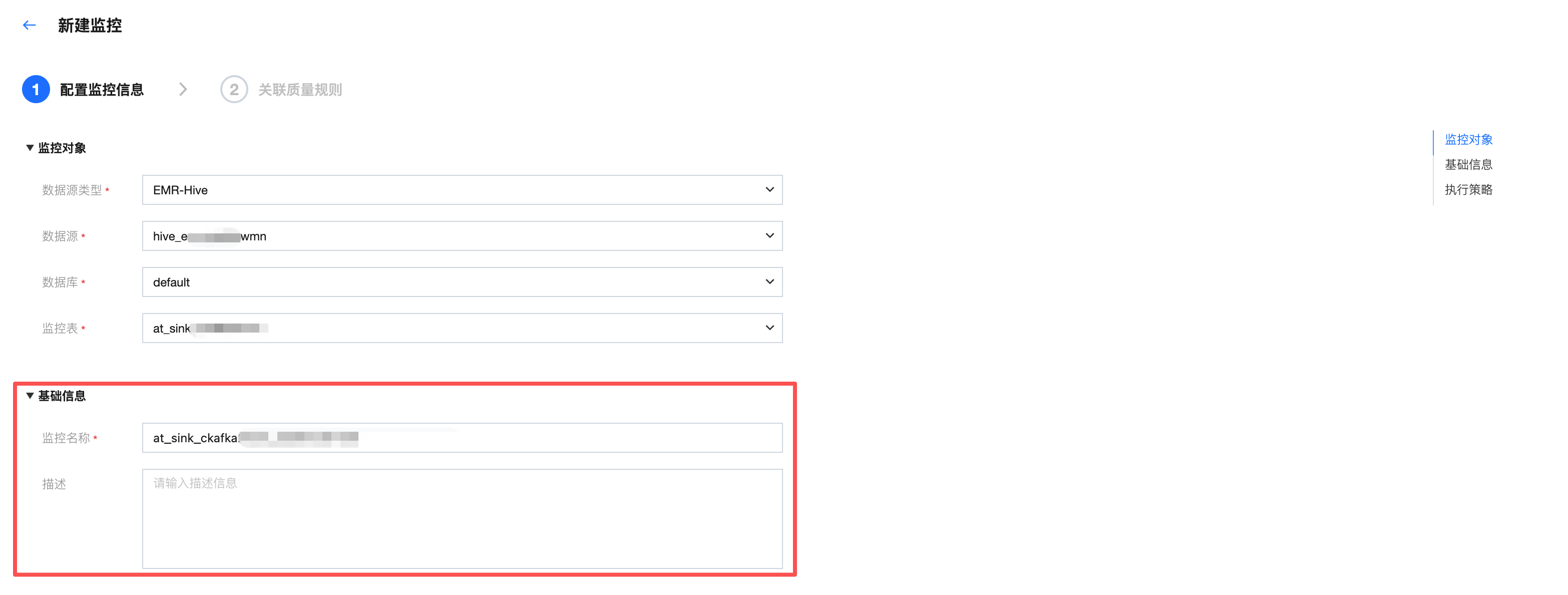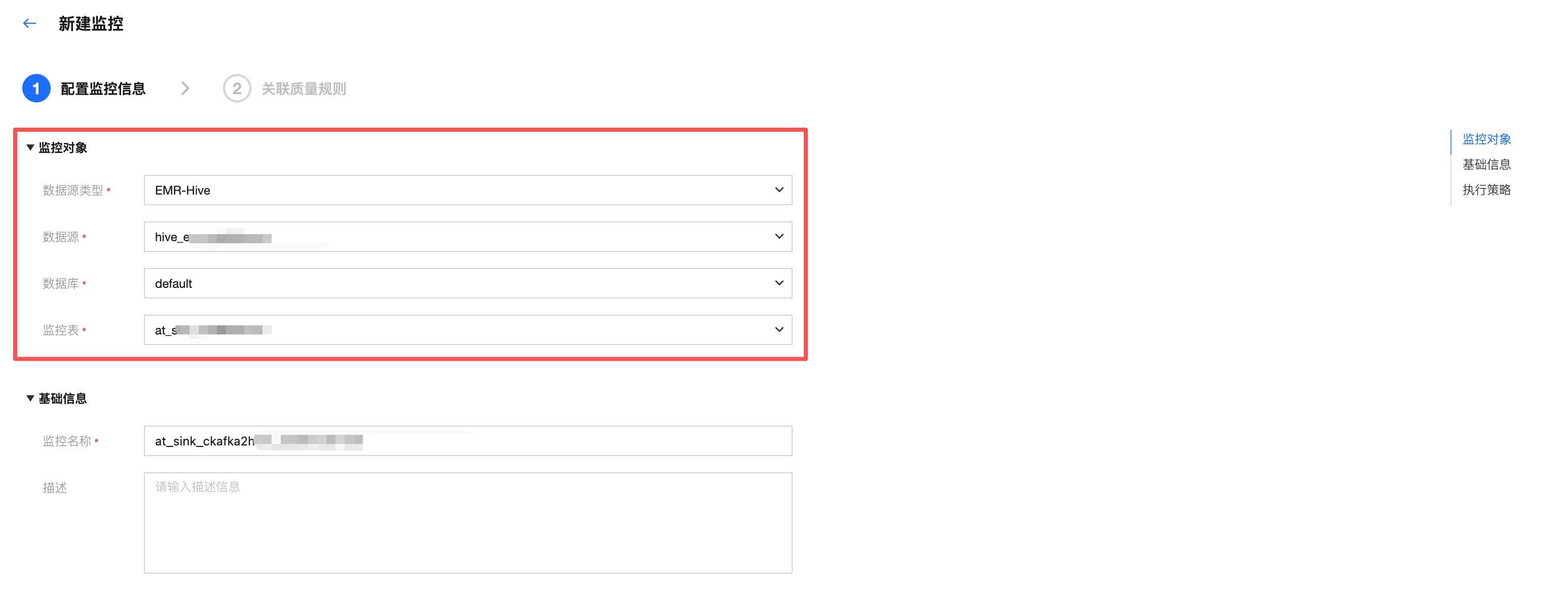 填入监控名称,默认监控名称为监控表名_创建监控时间戳。