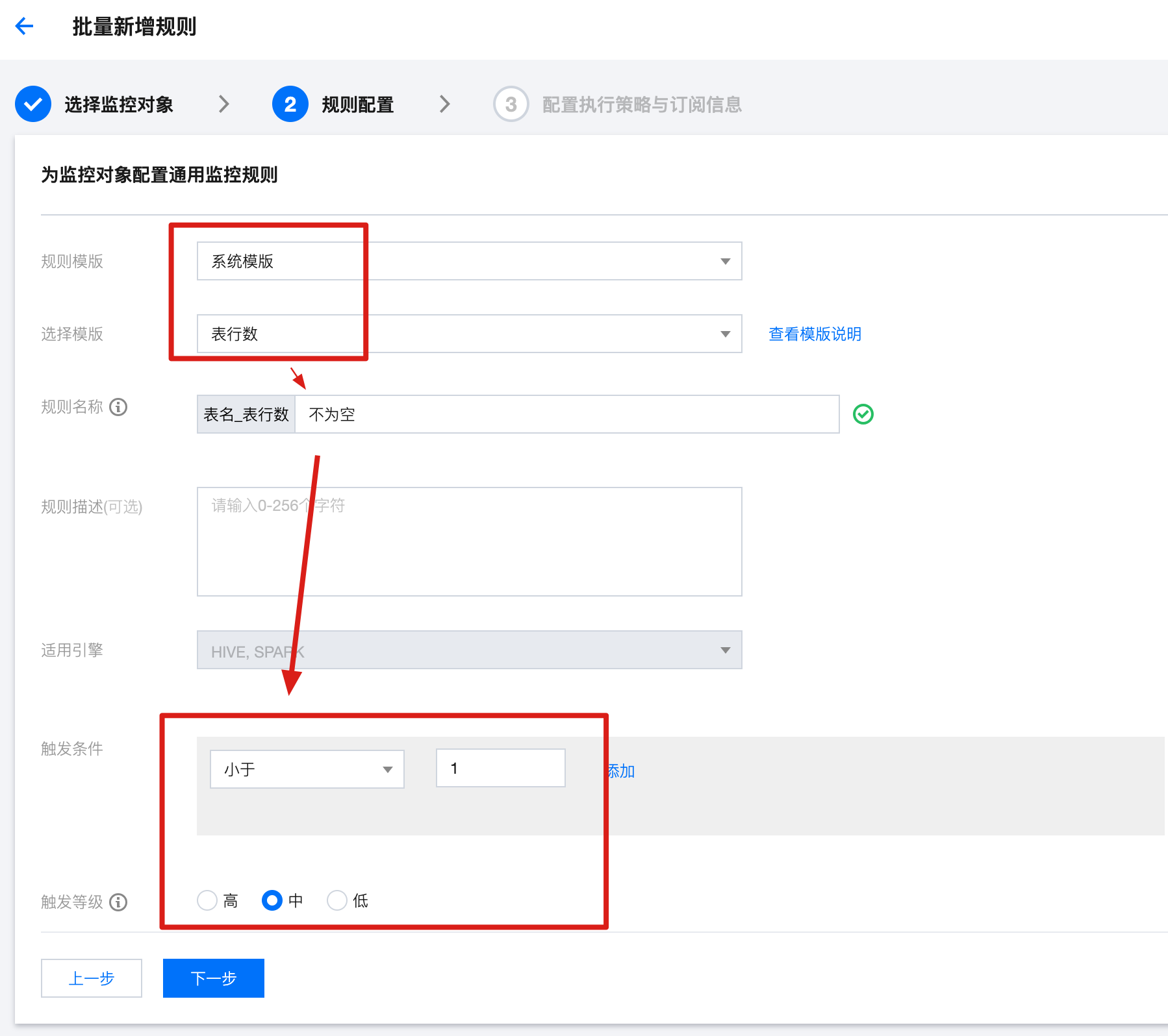 1. 选择规则模板:仅支持系统模板和自定义模板。