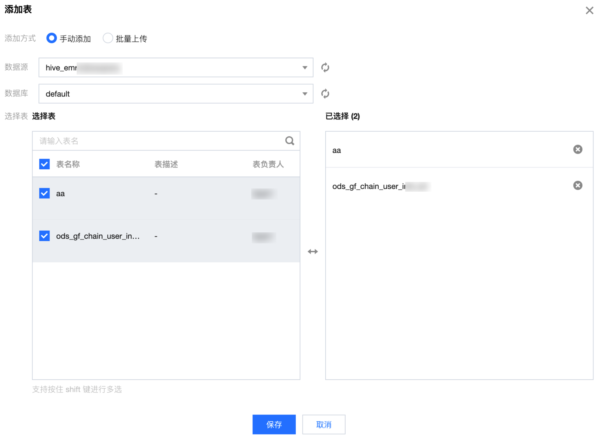 在规则列表中,支持通过多表新增规则和批量上传规则来在多张表下批量配置质量规则。