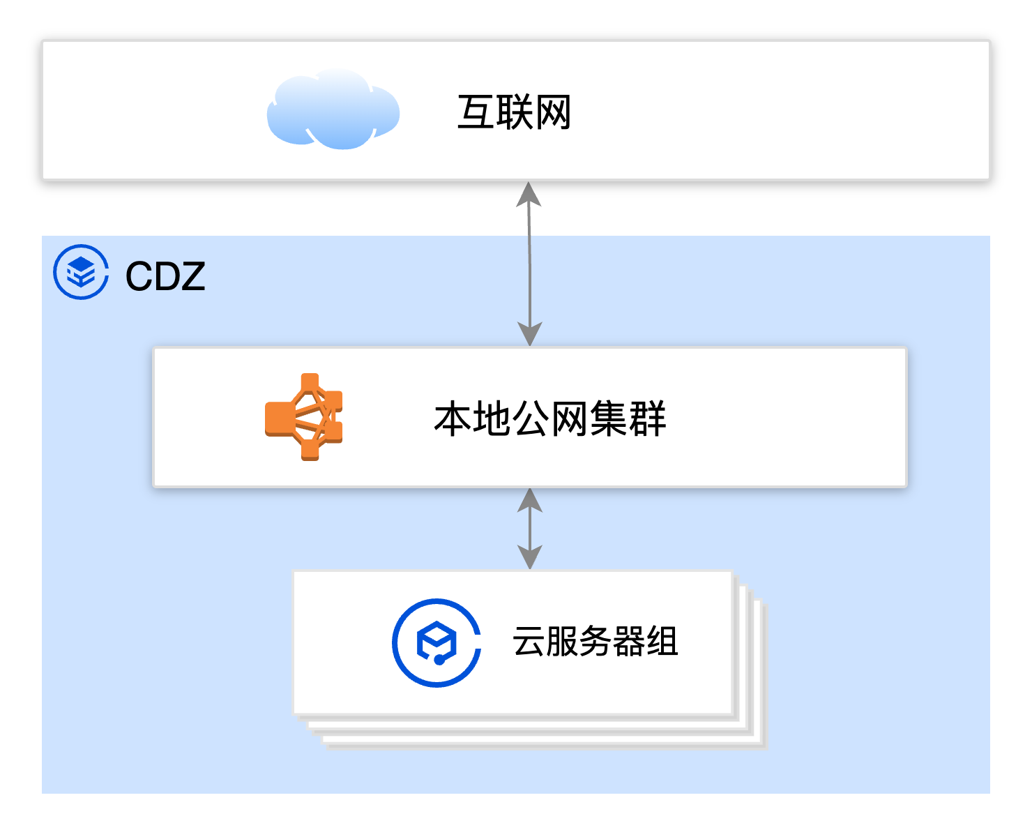 本地公网集群:CDZ 开区规划时,已确认并完成本地公网集群的部署。