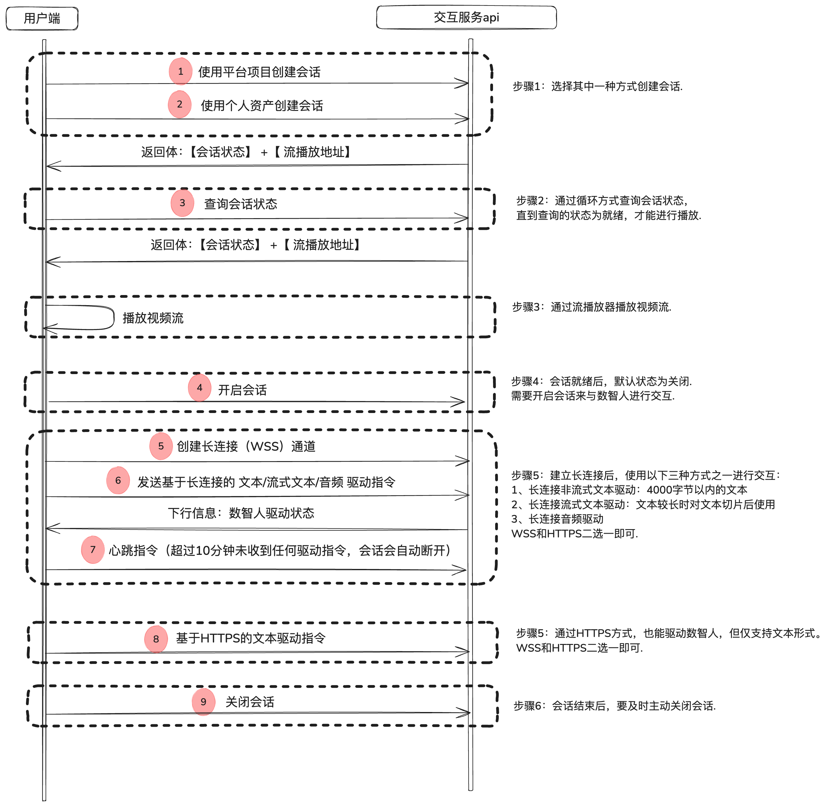 | | | 6 | - | 建立长连接通道后,可以通过 websocket 长连接发送音频驱动数智人。 | | |