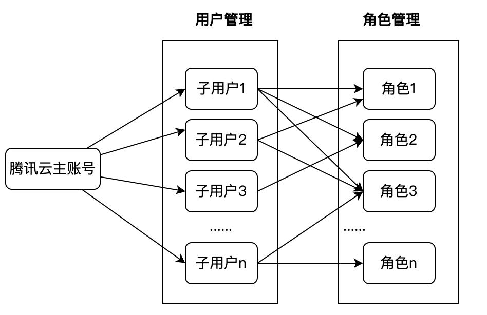 一个腾讯云主账号可以创建多个子用户,并可对子用户赋予不同的角色权限,从而进行数智人平台的权限控制,如下图所示:
