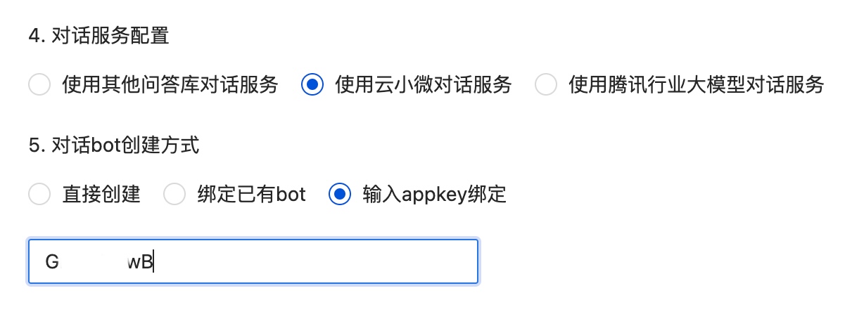 绑定已有对话-输入文本客服机器人 appkey