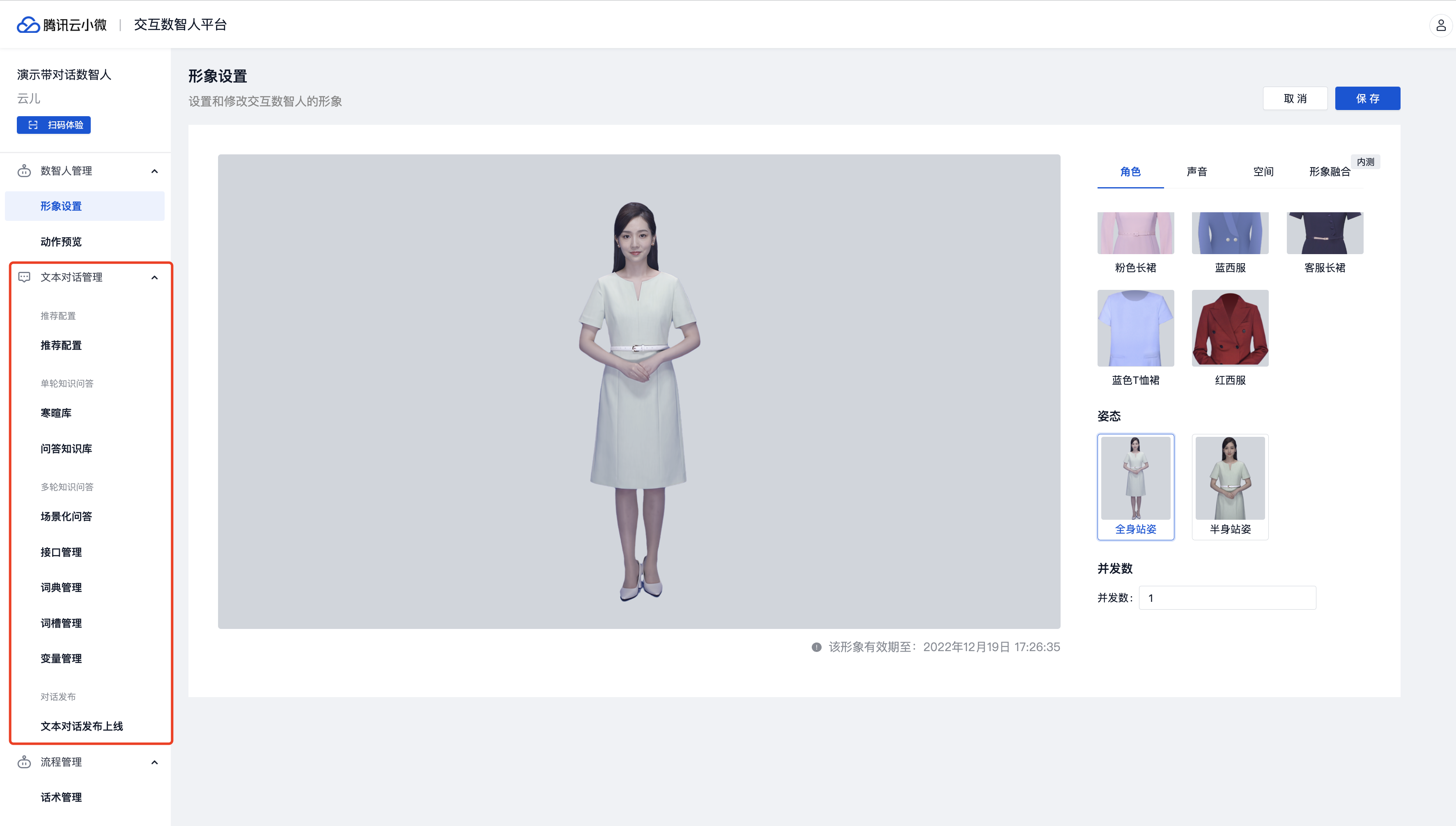 按照上述配置,即可在数智人项目里直接使用云小微对话服务,如下图所示: