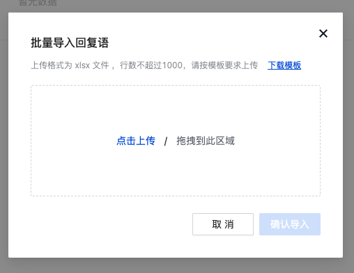 导入:可进行问答批量导入,下载模版填写完成后进行上传,单次仅允许上传单个文件,添加后可在列表查看,列表页入库方式显示为手动添加