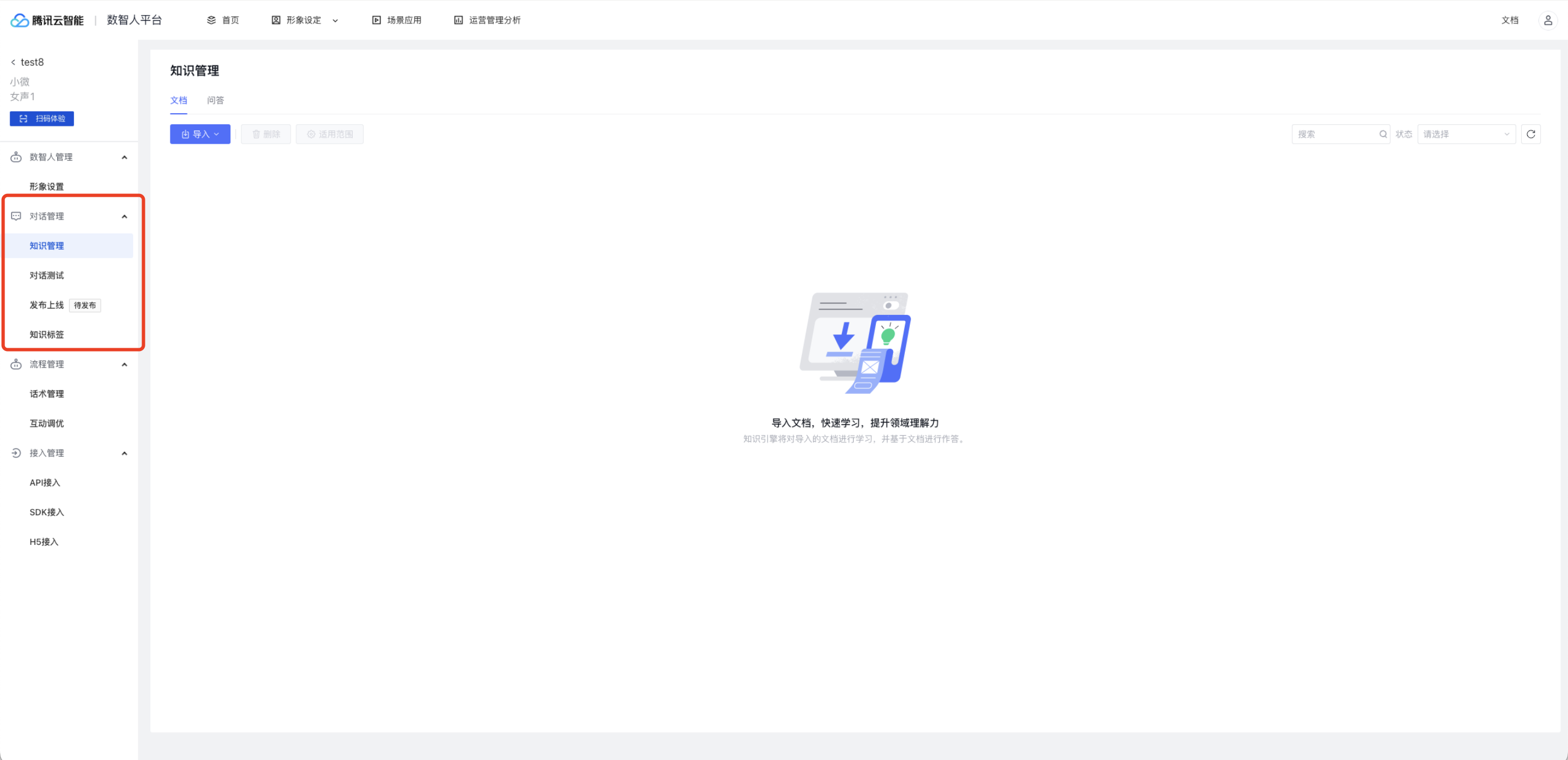 能够进行文档的导入以及相应对话的测试;