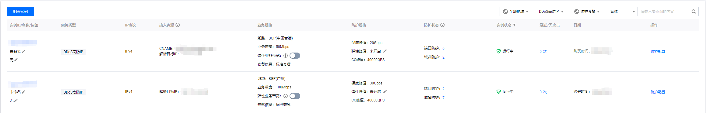 2. 在云上防护实例页面,选择目标实例,单击实例 ID。