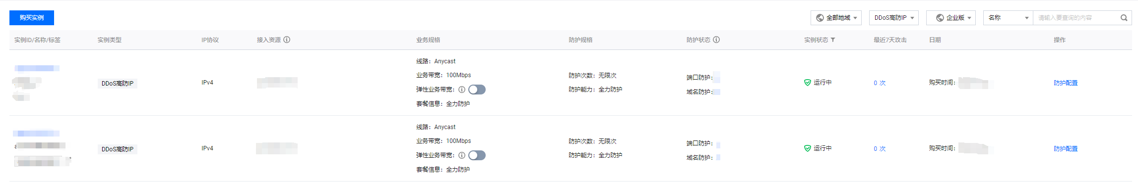 2. DDoS 高防 IP(境外企业版)实例配置防护规则:配置贴合业务的防护策略。