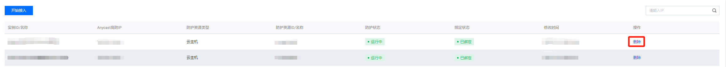 1. 在 IP接入页面,选择所需实例,单击操作列的删除。
