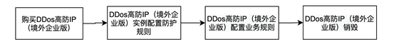DDoS 高防 IP(境外企业版)的使用生命周期包括购买 DDoS 高防 IP(境外企业版)、DDoS 高防 IP(境外企业版)实例配置防护规则、DDoS 高防 IP(境外企业版)配置业务规则 ,DDoS 高防 IP(境外企业版)销毁。