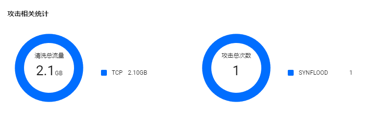 4. 在事件详情页面的攻击统计模块,可通过攻击流量协议分布、攻击类型分布,查看这两个数据维度下的攻击分布情况。