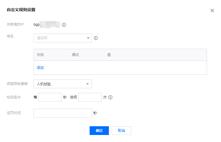 自定义 | 基于设置的自定义频控规则进行防护,针对特征符合频控规则设置条件的流量进行访问频率限制。 |
