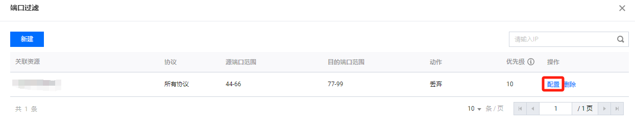 5. 新建完成后,在端口过滤列表,将新增一条端口过滤规则,可以在右侧操作列,单击配置,可以修改端口过滤规则。