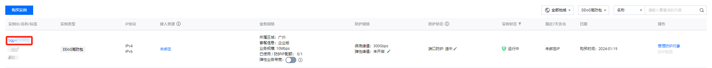2. 在云上防护实例页面,单击目标实例的“ID/名称/标签”列的实例 ID,进入实例的基础信息页面。