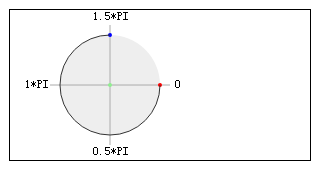 const ctx = wx.createCanvasContext('myCanvas')// Draw coordinatesctx.arc(100, 75, 50, 0, 2 * Math.PI)ctx.setFillStyle('#EEEEEE')ctx.fill()ctx.beginPath()ctx.moveTo(40, 75)ctx.lineTo(160, 75)ctx.moveTo(100, 15)ctx.lineTo(100, 135)ctx.setStrokeStyle('#AAAAAA')ctx.stroke()ctx.setFontSize(12)ctx.setFillStyle('black')ctx.fillText('0', 165, 78)ctx.fillText('0.5*PI', 83, 145)ctx.fillText('1*PI', 15, 78)ctx.fillText('1.5*PI', 83, 10)// Draw pointsctx.beginPath()ctx.arc(100, 75, 2, 0, 2 * Math.PI)ctx.setFillStyle('lightgreen')ctx.fill()ctx.beginPath()ctx.arc(100, 25, 2, 0, 2 * Math.PI)ctx.setFillStyle('blue')ctx.fill()ctx.beginPath()ctx.arc(150, 75, 2, 0, 2 * Math.PI)ctx.setFillStyle('red')ctx.fill()// Draw arcctx.beginPath()ctx.arc(100, 75, 50, 0, 1.5 * Math.PI)ctx.setStrokeStyle('#333333')ctx.stroke()ctx.draw()