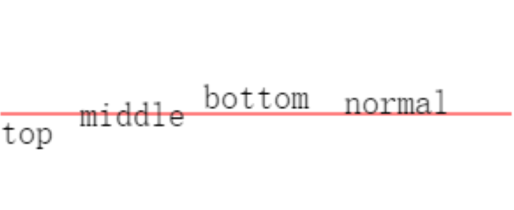 const ctx = wx.createCanvasContext('myCanvas')ctx.setStrokeStyle('red')ctx.moveTo(5, 75)ctx.lineTo(295, 75)ctx.stroke()ctx.setFontSize(20)ctx.setTextBaseline('top')ctx.fillText('top', 5, 75)ctx.setTextBaseline('middle')ctx.fillText('middle', 50, 75)ctx.setTextBaseline('bottom')ctx.fillText('bottom', 120, 75)ctx.setTextBaseline('normal')ctx.fillText('normal', 200, 75)ctx.draw()