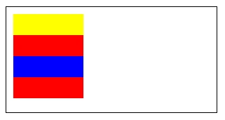 const ctx = wx.createCanvasContext('myCanvas')// begin pathctx.rect(10, 10, 100, 30)ctx.setFillStyle('yellow')ctx.fill()// begin another pathctx.beginPath()ctx.rect(10, 40, 100, 30)// only fill this rect, not in current pathctx.setFillStyle('blue')ctx.fillRect(10, 70, 100, 30)ctx.rect(10, 100, 100, 30)// it will fill current pathctx.setFillStyle('red')ctx.fill()ctx.draw()
