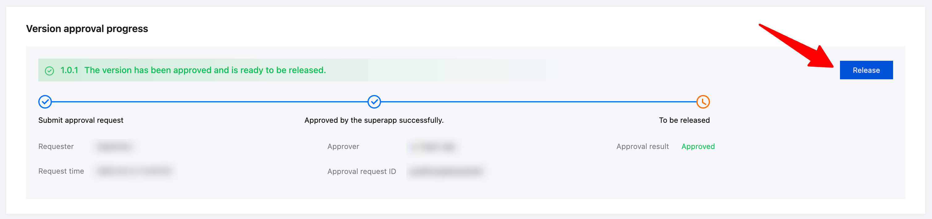 审批通过后,小程序团队还需要在“小程序管理-版本管理”处,对小程序进行发布。