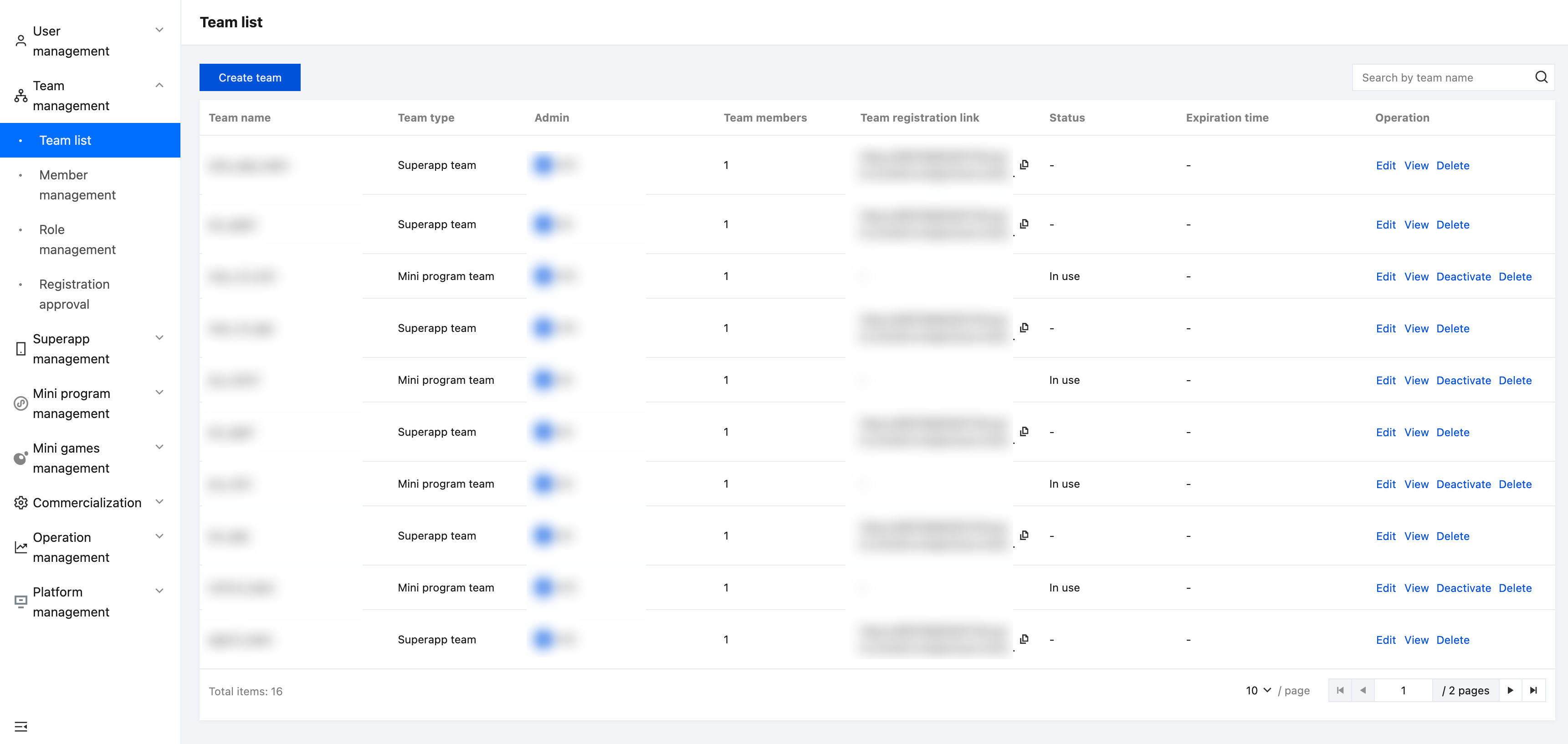 超级管理员和平台管理员可以手动停用小程序团队。
