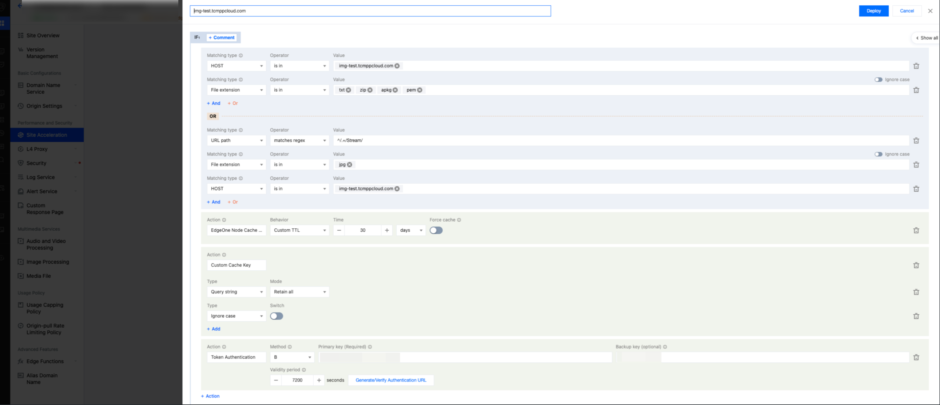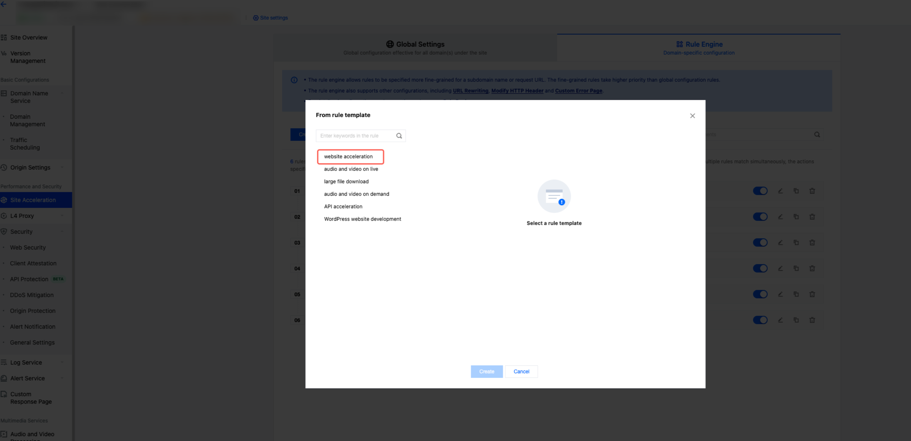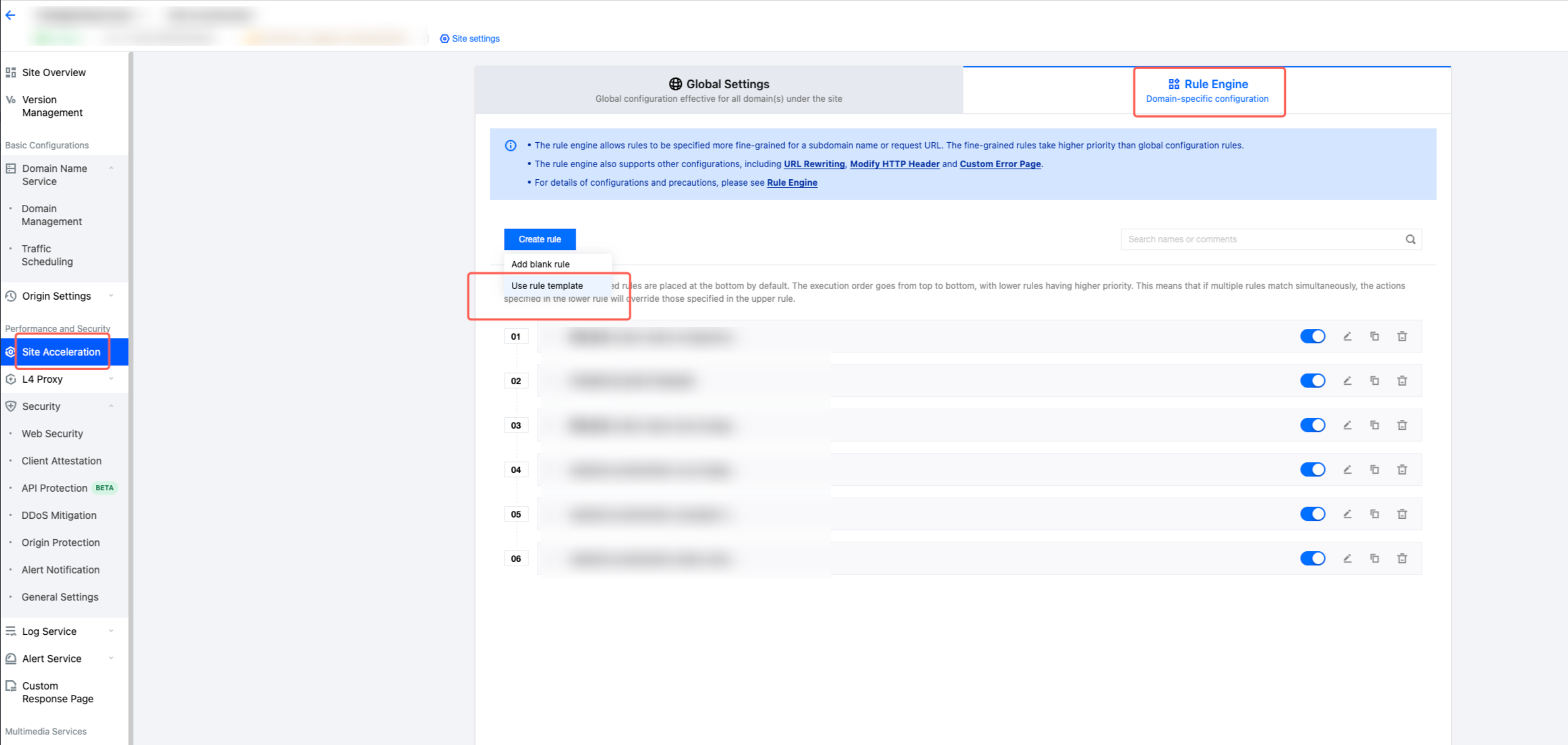 在左侧菜单,点击“Site Acceleration”,点击“Rule Engine”,配置 TypeB 鉴权。