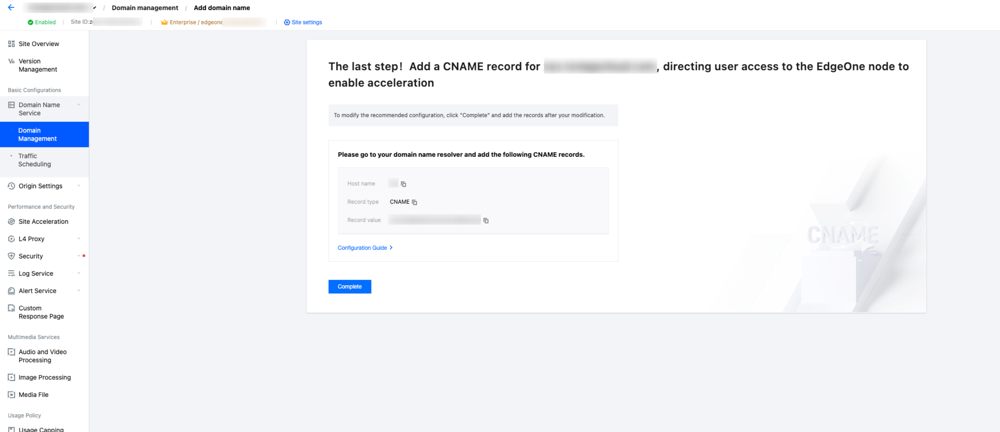 在配置 EO 之前,您需要提前准备或者购买一个二级域名,并在二级域名下创建一个子域名用作加速域名,若您需要购买自有域名,可前往域名注册完成域名购买。 EO 配置步骤