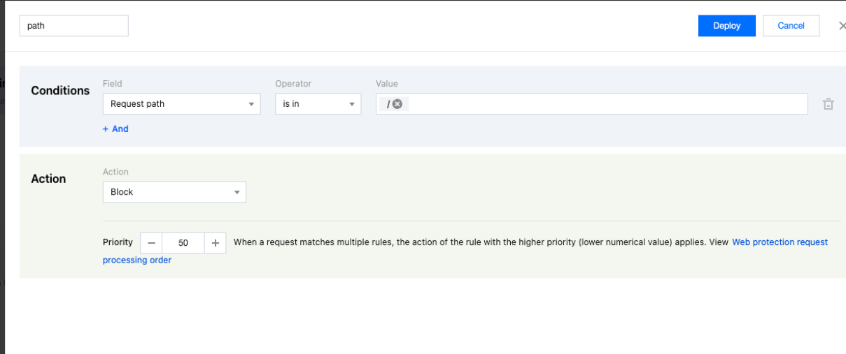 避免通过加速域名的根路径直接查看资源列表的问题,通过 EO 配置中的 Web 保护阻止根路径“/”处的资源。