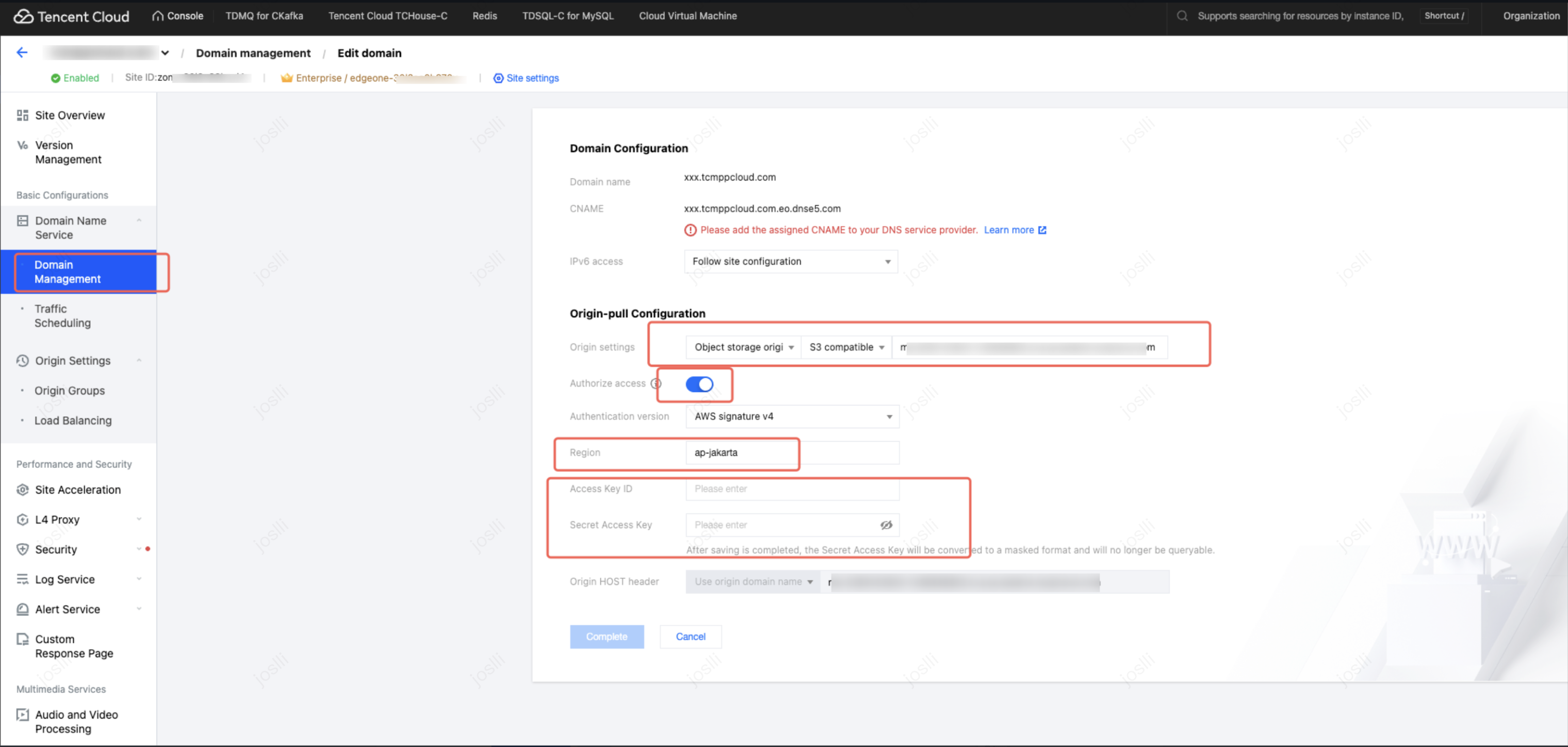 将 COS 的访问域名配置到 EO 加速的回源地址。