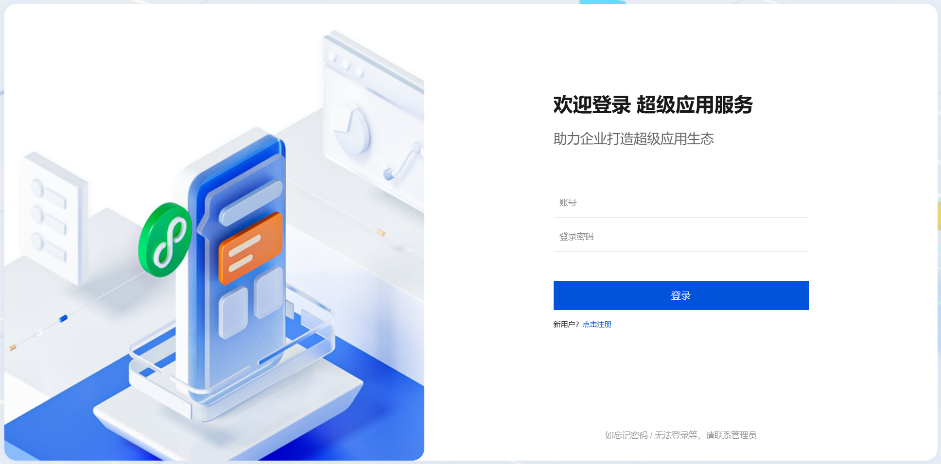 如果您是 Admin,创建好超级应用服务控制台的 Admin 账号后,Admin 可以通过浏览器打开控制台的登录链接。