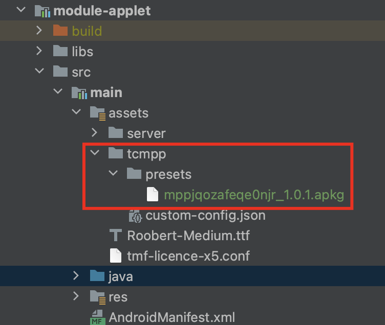 2. 将下载的小程序包拷贝到自定义的 assets 目录,离线小程序需严格遵守命名规则,不能随意修改。