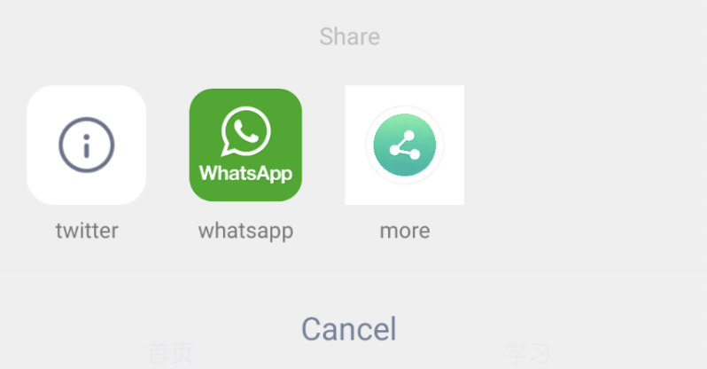 /*** 添加自定义分享项,目前使用在点击更多按钮、button 组件(open-type="share")呼起的 ActionSheet 中** @param text 分享菜单标题* @param drawableResId 图标资源id* @param id 自定义分享项的id,[100, 200]区间之内的值, 该 id 会作为 shareTarget 传递给 ShareProxy,用来区分分享渠道* @param shareKey 自定义分享项的key,需要与小程序定义一致* @param contentDescription 自定义分享项的描述,用于无障碍访问* @return 返回builder对象,用于链式调用*/public Builder addCustomShareItem(String text, int drawableResId, int id, String shareKey, String contentDescription)
