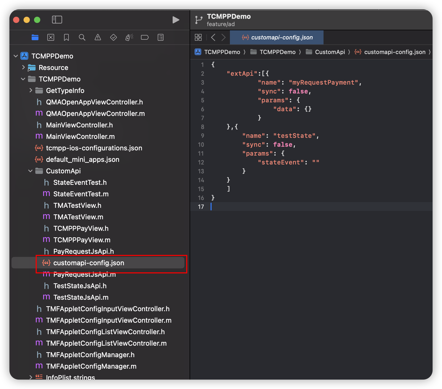 [[TMFMiniAppSDKManager sharedInstance] setCustomApiConfigFile:[[NSBundle mainBundle] pathForResource:@"customapi-config" ofType:@"json"]];