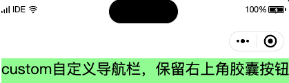 navigationStyle | string | default | 导航栏样式,仅支持以下值: default 默认样式,包含原生导航栏和胶囊按钮。 custom 自定义导航栏,只保留右上角胶囊按钮。web-view 所在页面中不生效。 hide 隐藏导航栏和胶囊按钮。web-view 所在页面中只隐藏胶囊按钮。 customV2自定义导航栏,只保留右上角胶囊按钮。 hideV2隐藏导航栏和胶囊按钮。 参见表格后紧接的注 2、注3。 |