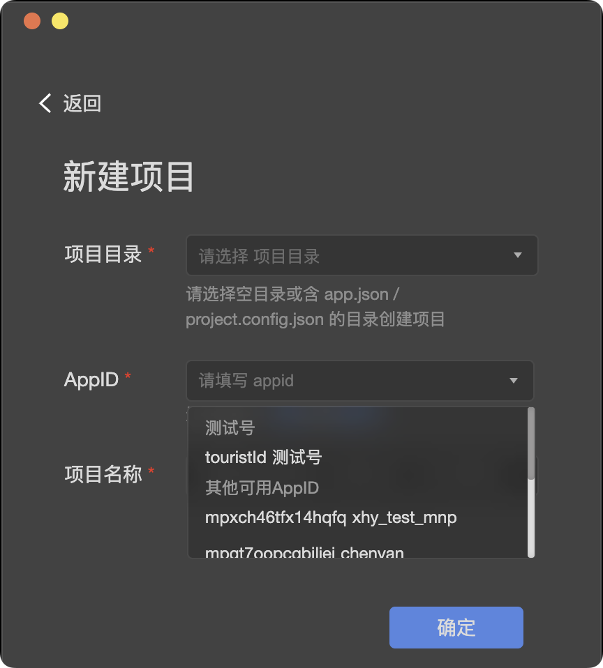 本地创建一个新项目,需要选择一个空文件夹,此时会在该目录下生成一个简单的默认项目,如果选择文件夹下包含 app.json 则会直接打开该项目。
