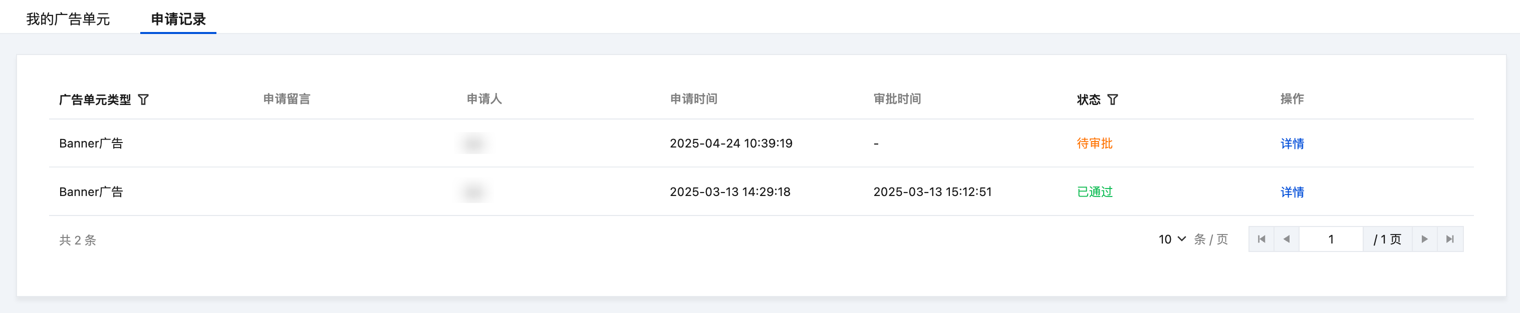 申请使用广告单元